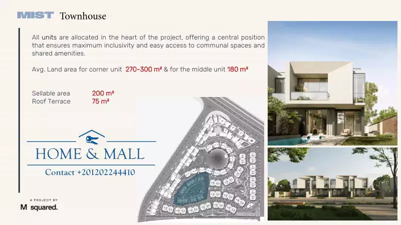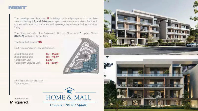 يوفر كمبوند ميست شركة M Squared حوالي 779 وحدة سكنية متنوعة بين شقق وفيلات للبيع، مما يتيح خيارات تناسب جميع الأذواق، مع أسعار تبدأ من 5,325,736 جنيه مصري وأنظمة سداد مرنة بدفعة مقدم 5%.