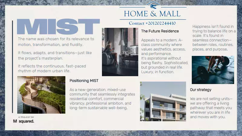 يتألق كمبوند ميست التجمع الخامس كأحد أبرز مشاريع شركة M Squared، ويتميز بتصميم معماري مبهر وموقع استثنائي في قلب المربع الذهبي بالقاهرة الجديدة، حيث تلتقي الفخامة بالخصوصية، ليحظى السكان بحياة عصرية متكاملة ومليئة بالراحة والتميز.